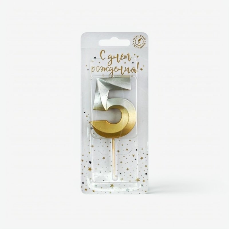 Доставка Свеча декоративная Цифра "5" Золото-Серебро из магазина в вашем городе: