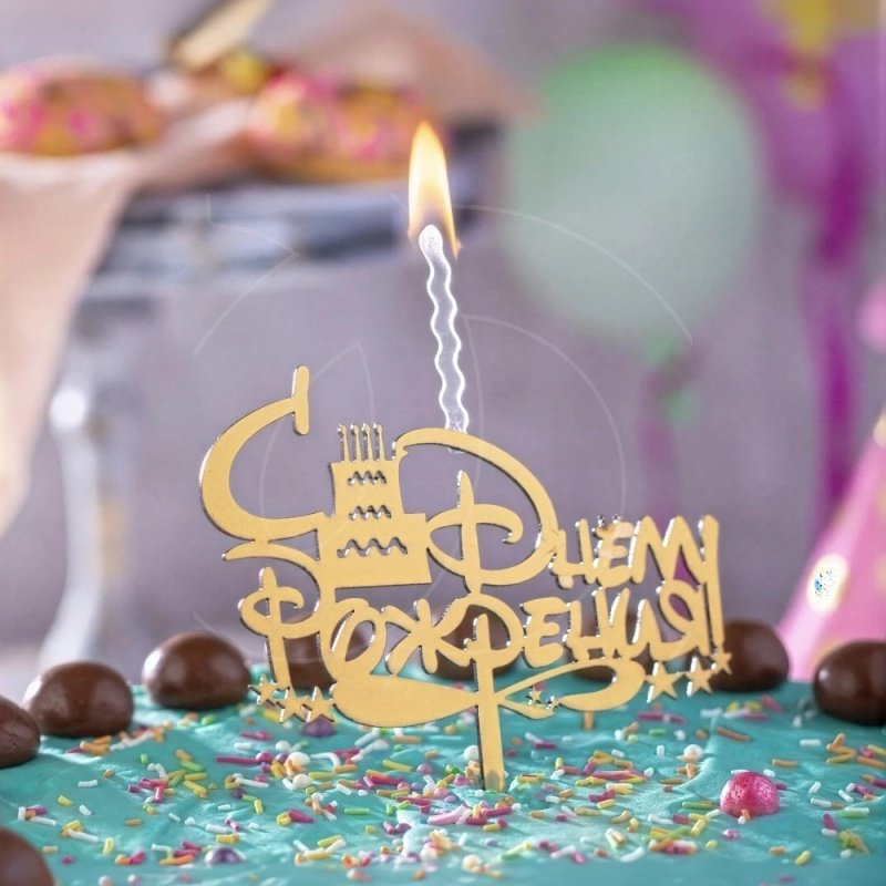 Доставка Свеча-топпер декоративная акриловая "С днём рождения" Золото из магазина в вашем городе: